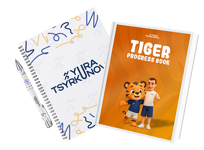Branded items help maintain the spirit and rituals we build during training and mentorship: the T-shirt — as a symbol of unity, the diary — as a tracker of small victories, the bottle — as a reminder to take care of yourself. All items are adapted for kids and adults and come in convenient sets.