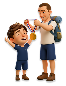 “Pick a scene and color it! Here I’m jumping, here with a medal, and here — with friends.”